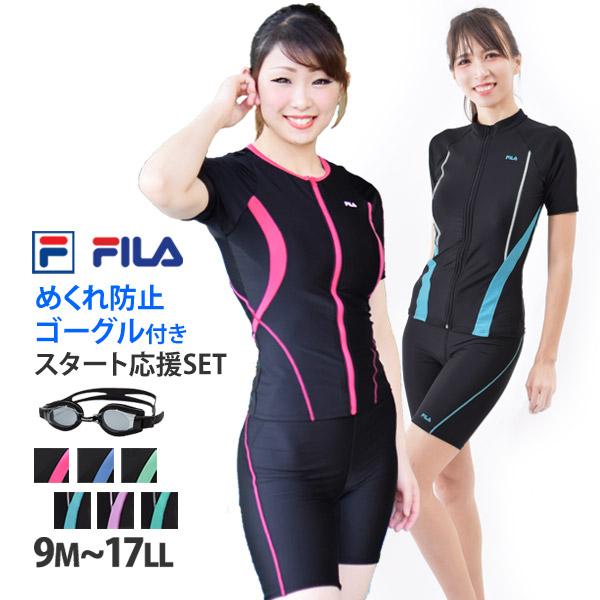 国内在庫 フィットネス水着 レディース セット 半袖 Filaフィラ スイムゴーグル付き 4点セット 水着